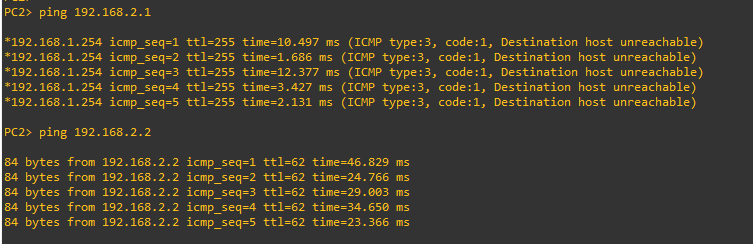 pc2에서 PC3 통신 X , PC4 통신 정상