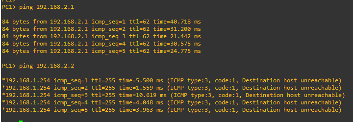 PC1에서 PC3 통신 정상 , PC4 통신 X