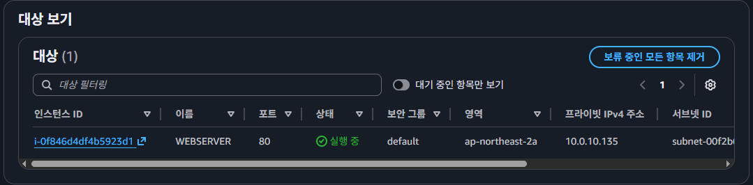 ++ 인스턴스 3개 중 남은 한개를 대상그룹에 보류중인 상태로 넣었다.